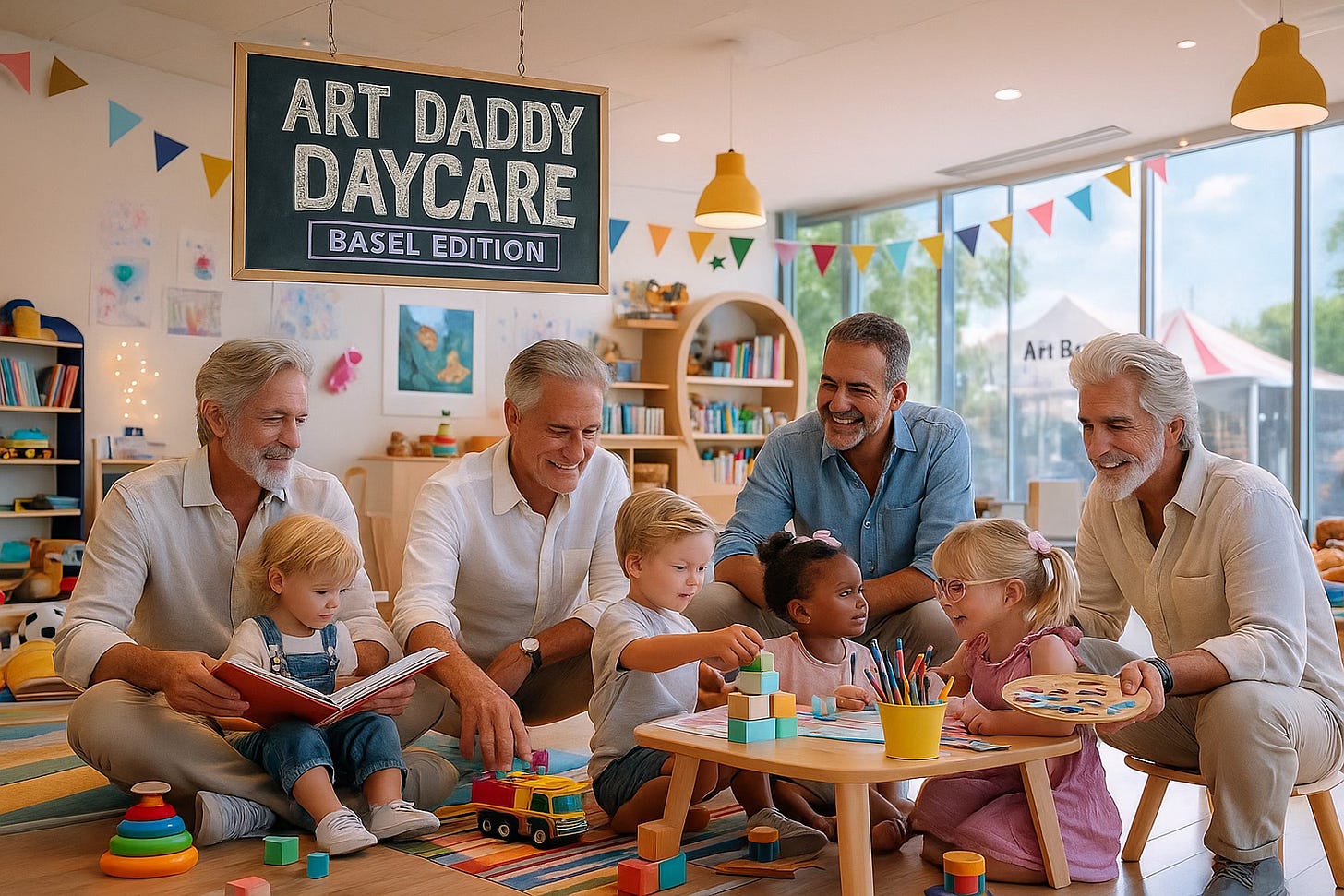 Welcome to Art Daddy Daycare: Basel Edition, where the floors are foam, the vibes are serene, and the men are safely contained so they don’t accidentally wander into a Basel booth and start lecturing a gallerina about “process.”