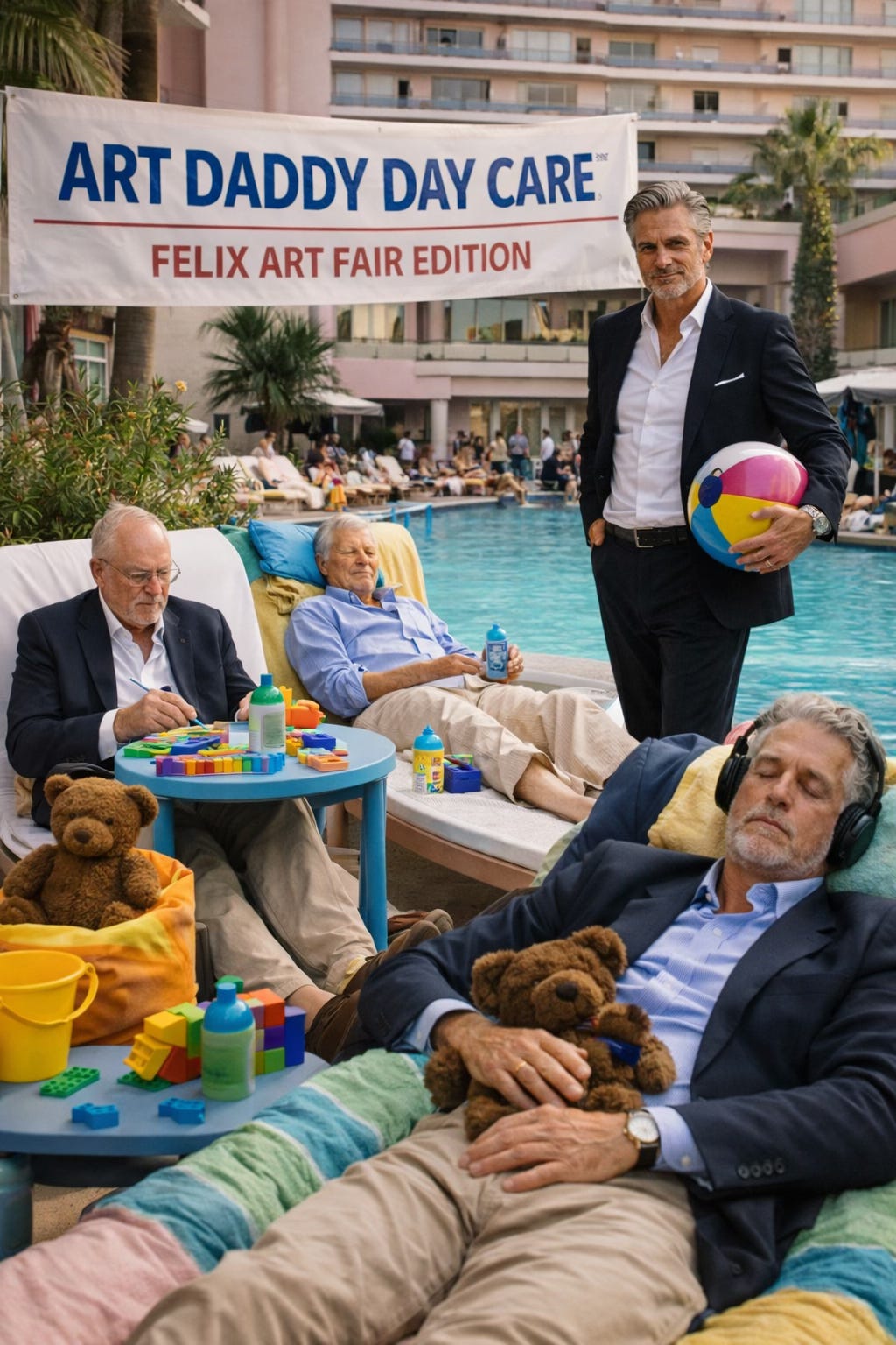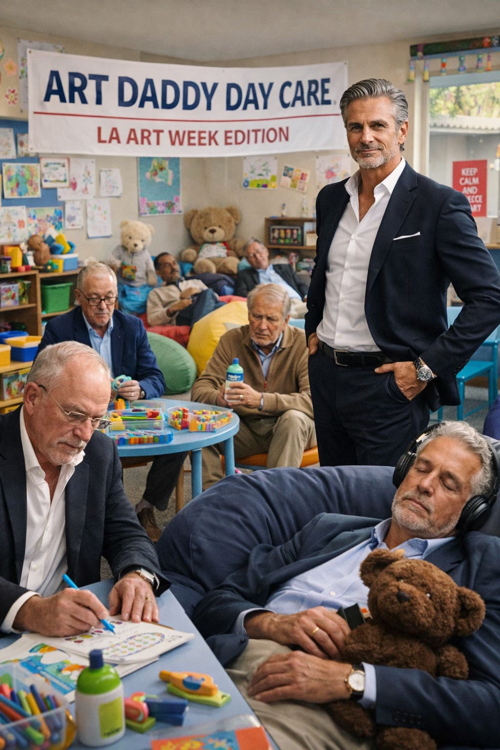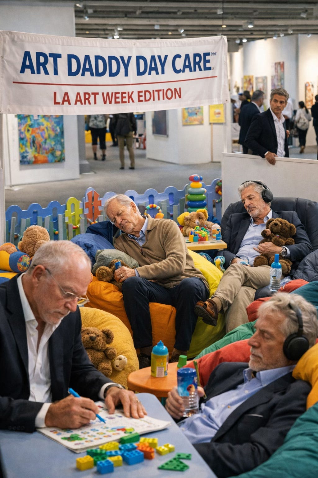 And because the children cannot be trusted to regulate themselves between champagne refills and whispered secondary market rumors, Art Daddy Day Care™ is expanding to the West Coast.